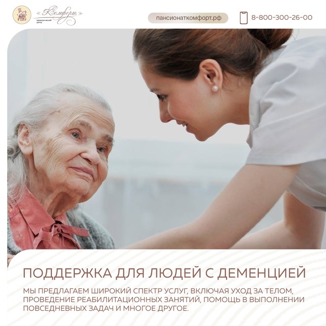Мы рады сообщить вам, что в нашем гериатрическом центре Комфорт доступна услуга ухода за пожилыми людьми с деменцией. Наша команда профессионалов заботится о каждом постояльце индивидуально, обеспечивая им комфортное и безопасное проживание.